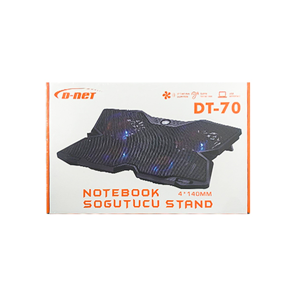 کول پد D-Net مدل DT70 یک پایه خنک‌کننده لپ‌تاپ با 4 فن است که برای خنک نگه داشتن لپ‌تاپ‌های 10 تا 17 اینچی مناسب استاین کول پد دارای نورپردازی LED، دو پورت USB، تنظیم ارتفاع و گیره نگهدارنده لپ‌تاپ است.